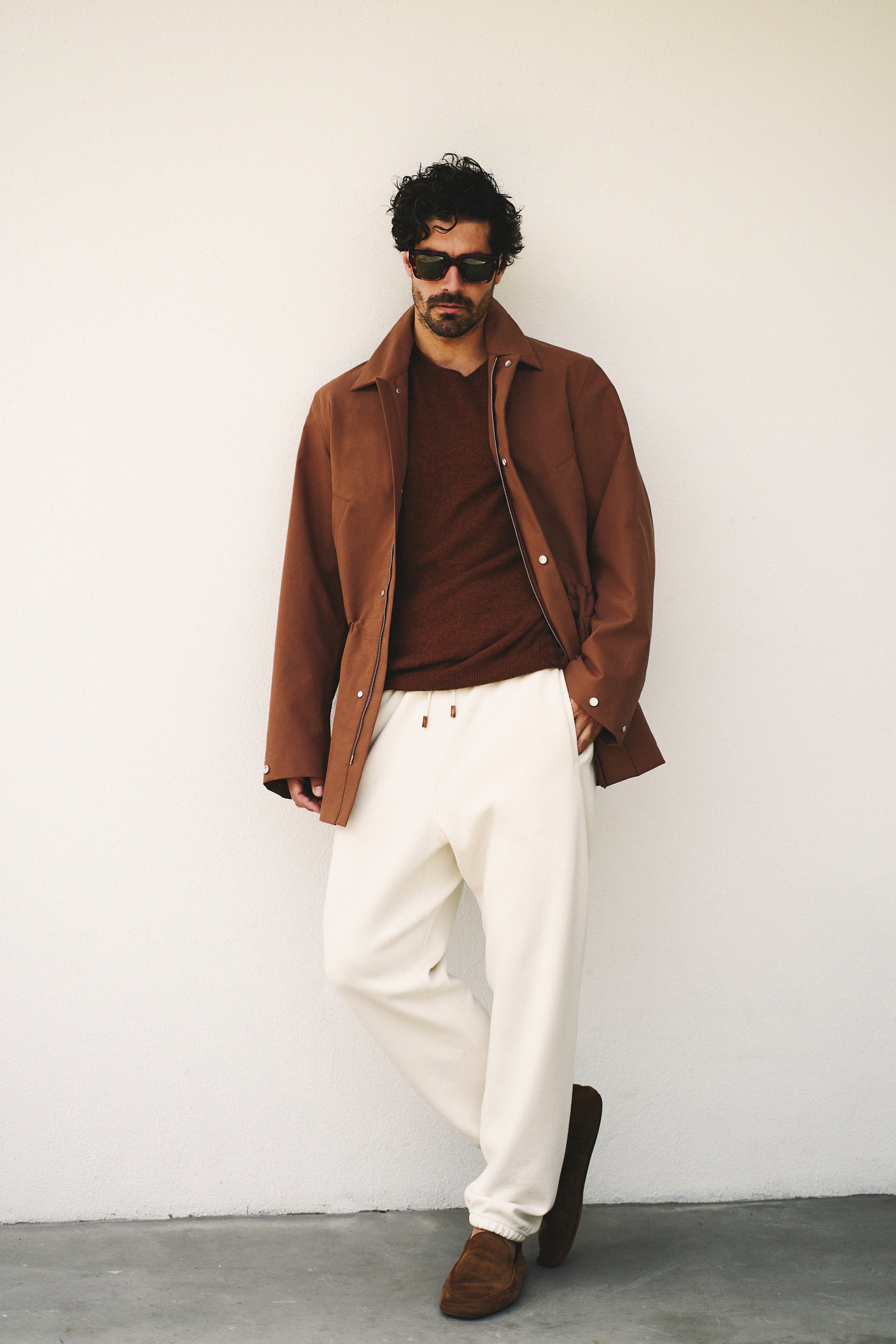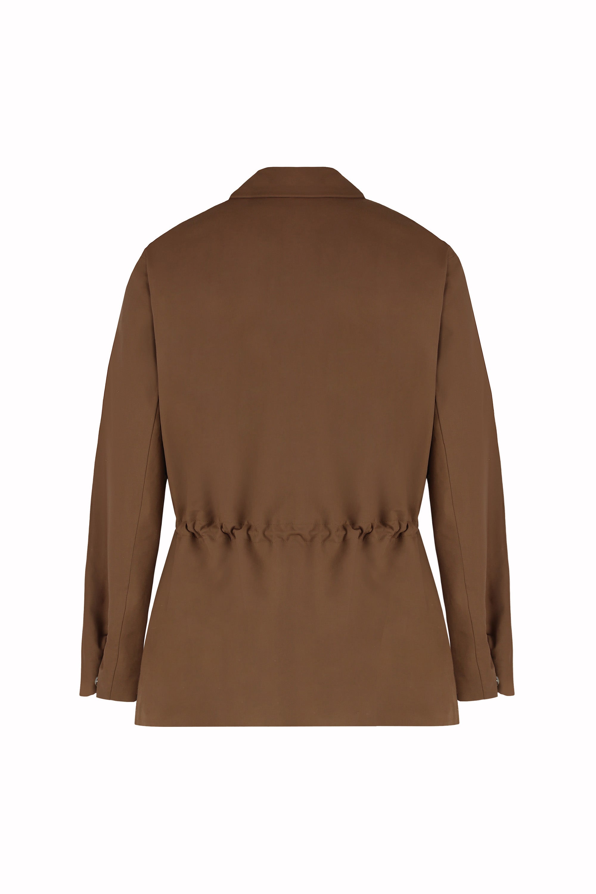 Inspired by the iconic safari silhouette, this Country Jacket is crafted from a crisp blend of cotton and linen with a unique texture that recalls sleek technical fabrics. From the heat-sealed seams and the concealed front fastening to the adjustable waist and classic utility details – every element balances practical comfort with timeless style. A key clip inside the left pocket adds functional refinement.