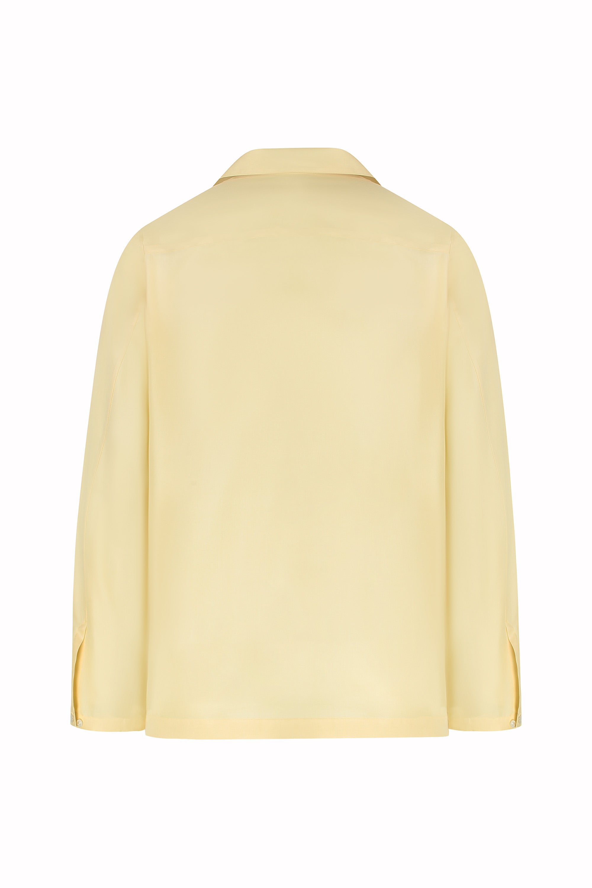 La camicia Havana presenta un distintivo collo cubano e una tasca singola sul petto. È realizzata in pura seta con una silhouette rilassata e si chiude con bottoni naturali in madreperla. Un esempio compiuto dell’approccio più disinvolto al tailoring che definisce la stagione.